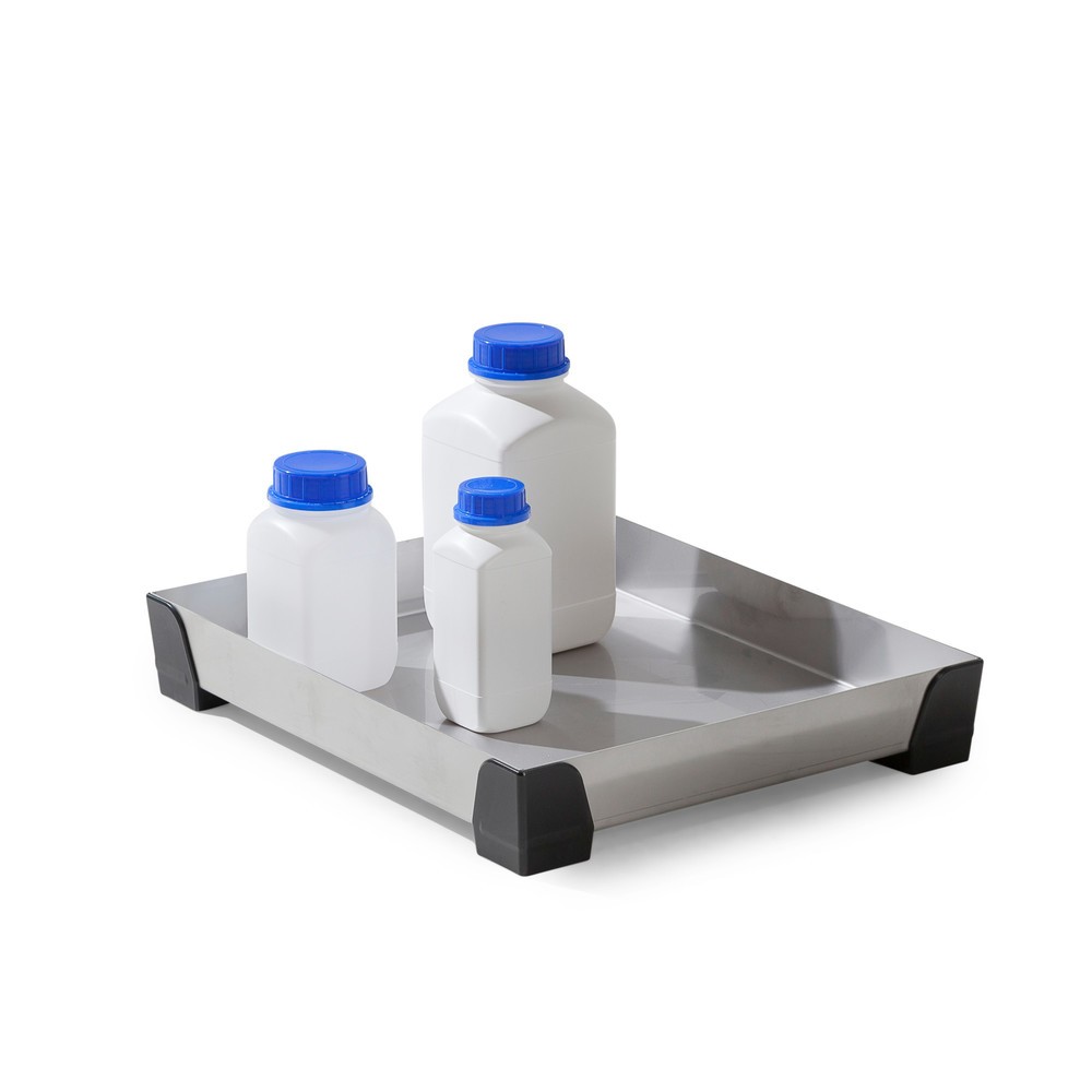 Utilisez la cuve pour petits contenants en acier inoxydable pour entreposer des matières dangereuses en toute sécurité sur le poste de travail. Évitez les dommages susceptibles de survenir dus à des fuites incontrôlées de produits chimiques.