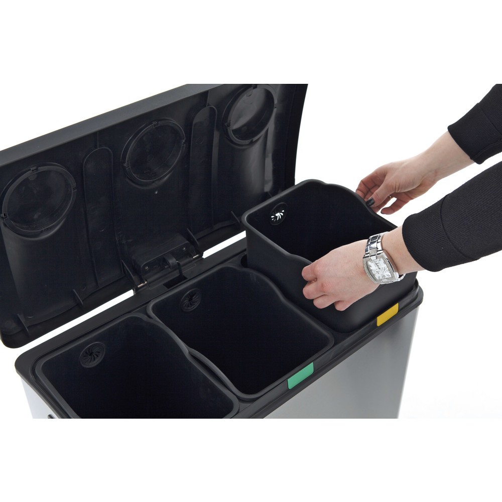 Poubelle à pédale Rejoice Recycling, 3 x 12 l, acier inoxydable mat