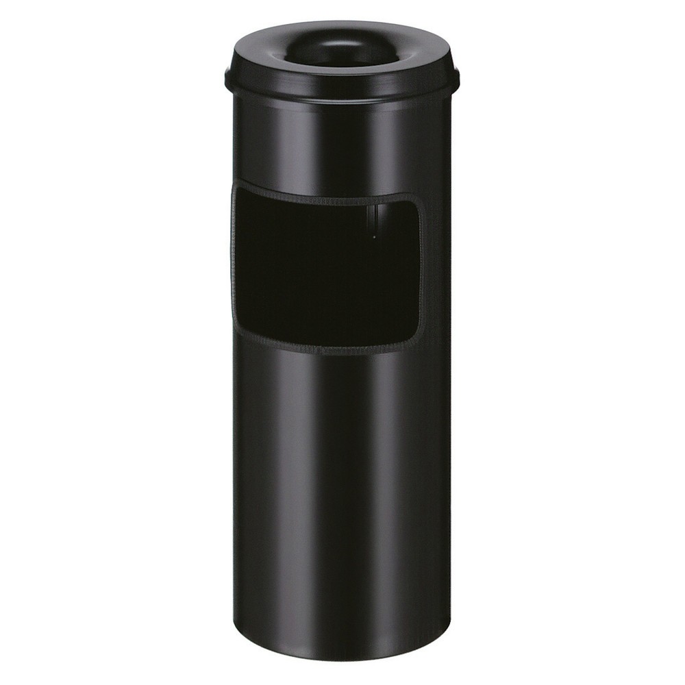 As-/afvalbakcombinatie van staal, met brandblusser, rond, 30 liter, zwart