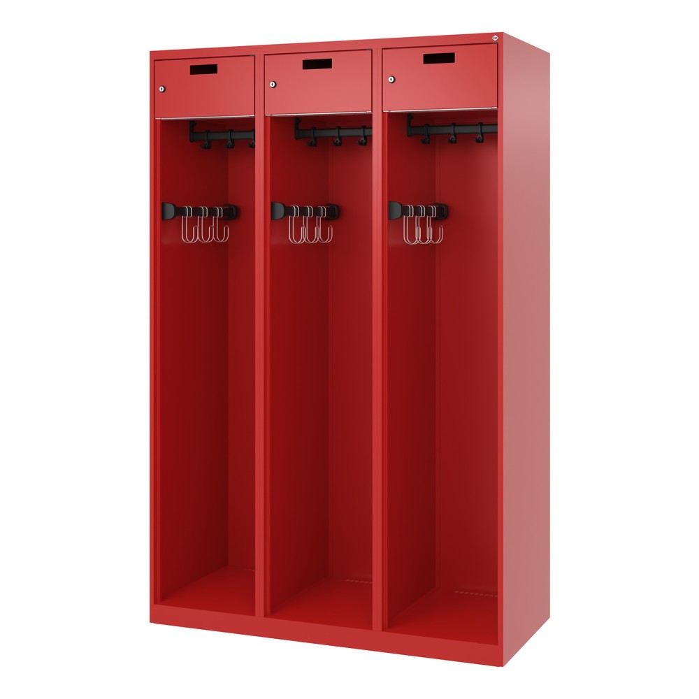 C+P brandweerkast PRAKTUS, vloerglijders, 3 compartimenten, hxbxd 1.850 x 1.200 x 500 mm, vuurrood