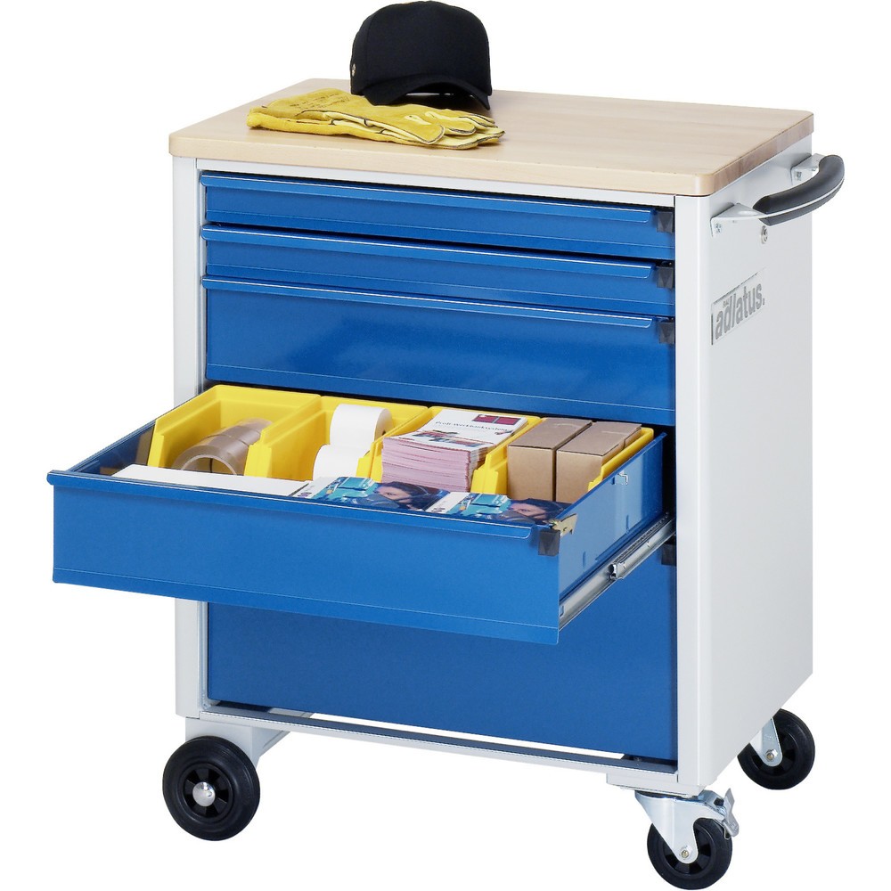 Gereedschapswagen RAU serie adlatus 700, hxbxd 860 x 700 x 510 mm, 5 lades 2 x 65, 2 x 130, 1 x 260 mm, beuken werkblad