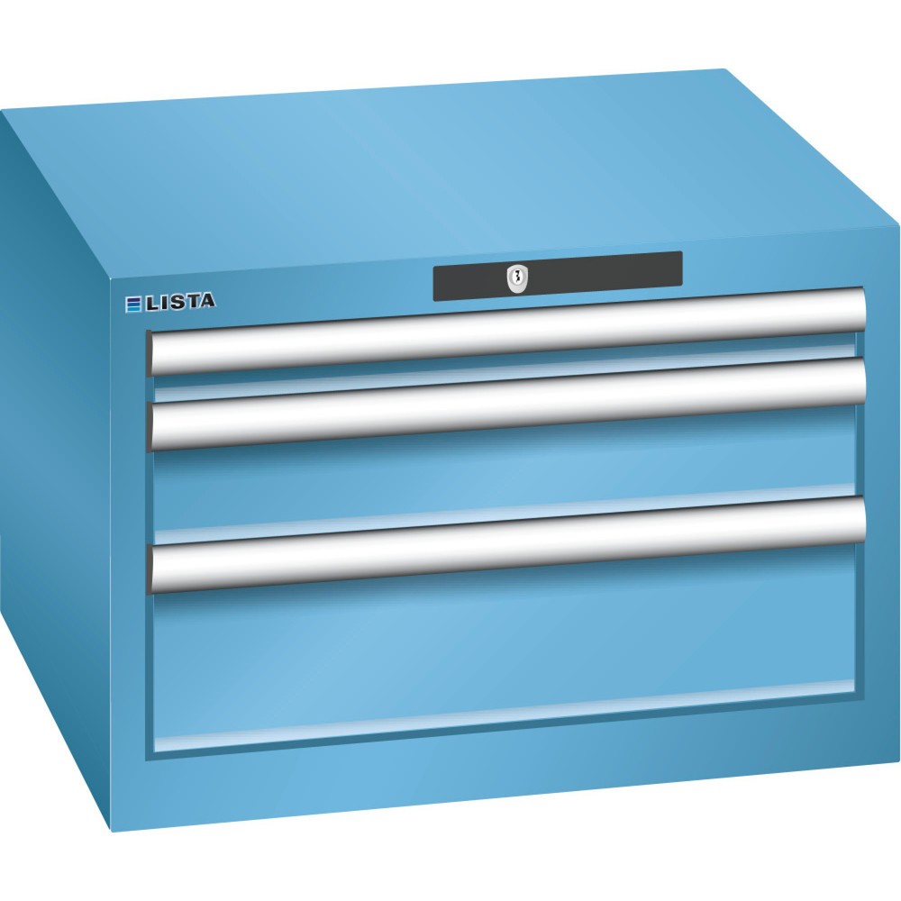 Ladekast LISTA 27x27E, (bxdxh) 564x572x383 mm, 3 lades, 1 x 50 / 1 x 100 / 1 x 150, lichtblauw, KEY Lock