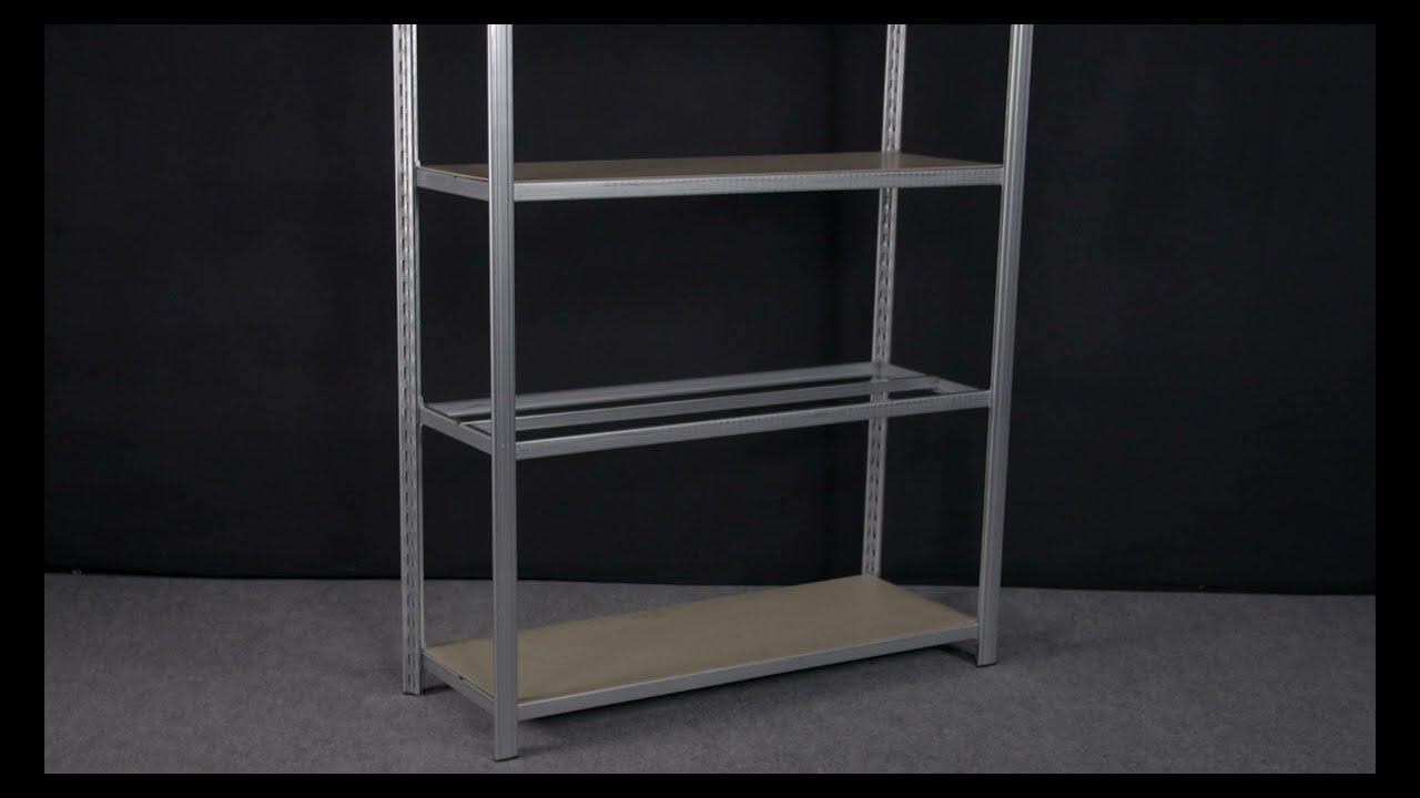 - Robuuste legbordrek van buizenstaal met legborden van spaanplaat