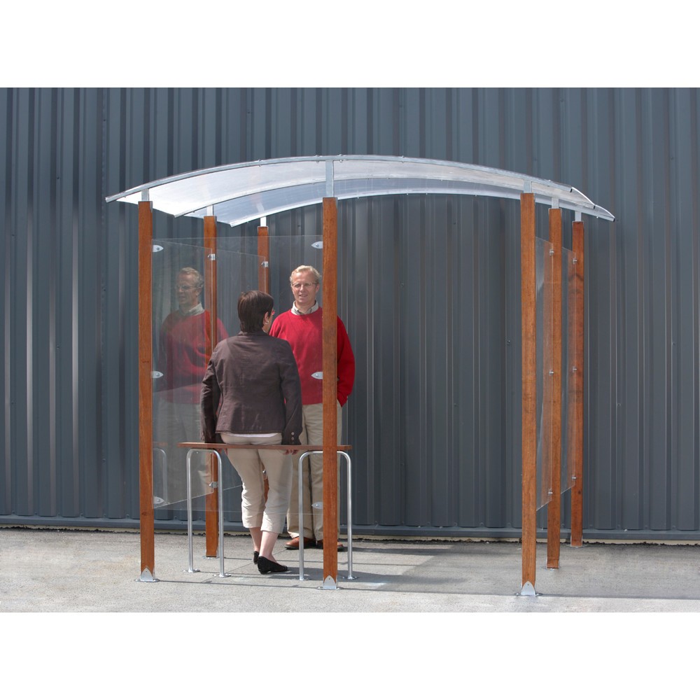 De MOTTEZ overkapping voor rokers biedt optimale bescherming en stabiliteit met zijn weerbestendige stalen dak en duurzame houten steunen. Als comfortabele rookruimte is deze ideaal voor werknemers of gasten in bedrijven, openbare inrekken en horecagelegenheden.