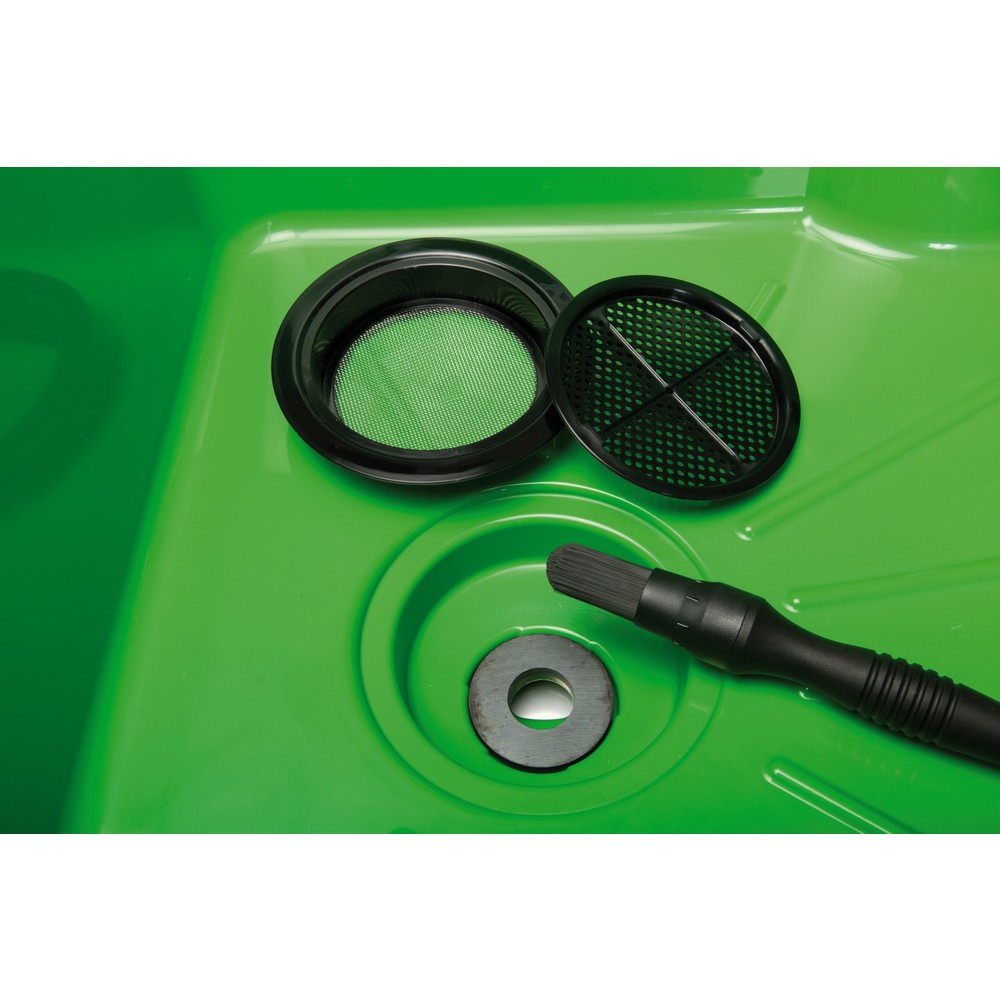 Als u bij werkzaamheden regelmatig gereedschappen, kleine metalen delen of vette delen moet reinigen, is de reinigingstafel BIO-CIRCLE maxi een grote hulp voor u. Met de milieuvriendelijke onderdelenreiniger kunt u zonder oplosmiddelen en ontvetters zelfs sterk vervuilde en vettige delen in een handomdraai schoonmaken. De onderdelenreiniger is gemaakt van polyethyleen en is makkelijk verrijdbaar met een transpallet. Zo kunt u direct op locatie schoonmaken.