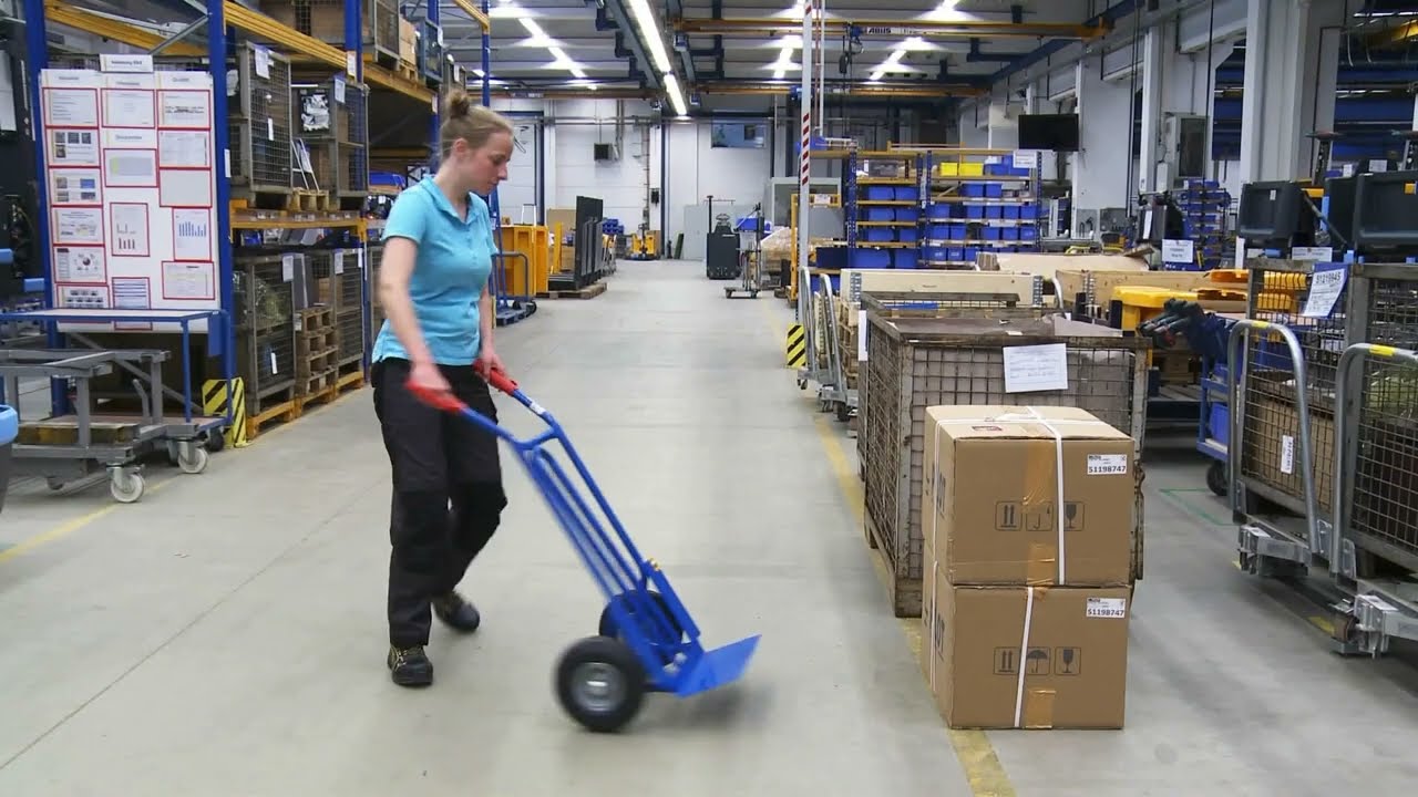Comfortabel rijden door de beide afgebogen kunststof grepen met knokkelbescherming en de grote volrubber banden. Van stabiele, gelaste staalconstructie met poedercoating: hiermee is de steekwagen duurzaam beschermd.