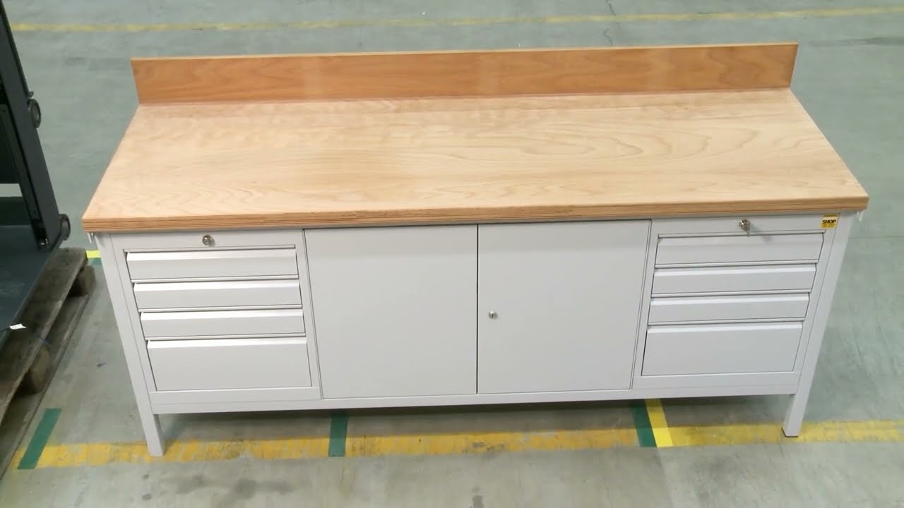 In ons assortiment zijn er meerdere uitvoeringen verkrijgbaar: U kunt kiezen uit varianten met kasten en lades. De geoliede multiplexplaat van beukenhout heeft een dikte van 40 mm en is verkrijgbaar in de lengten 1.500 mm en 2.000 mm. De onderbouw van de kast heeft een diepte van 600 mm. De lades (op kogellagers) zijn tot 85 % uittrekbaar zodat de inhoud ervan goed toegankelijk is. De capaciteit per lade is 30 kg of 50 kg. De kastdeuren zijn uitgerust met een cilinderslot en de laden met een centrale vergrendeling – zo beveiligt u gereedschap en materialen tegen diefstal.