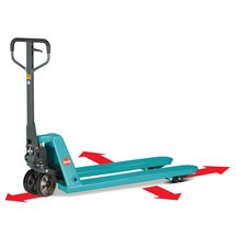 Transpalletten zijn verkrijgbaar met verschillende vorklengtes en ook de afstand tussen de vorken kan verschillen. Dankzij onze ruime keuze aan pallettrucks bieden wij ook veel verschillende vorklengtes aan. In onze online shop vindt u palletwagens met vorken met speciale breedtes voor vrachten met ongebruikelijke afmetingen. U kiest de geschikte vorken aan de hand van de goederen die regelmatig in uw bedrijf worden vervoerd: